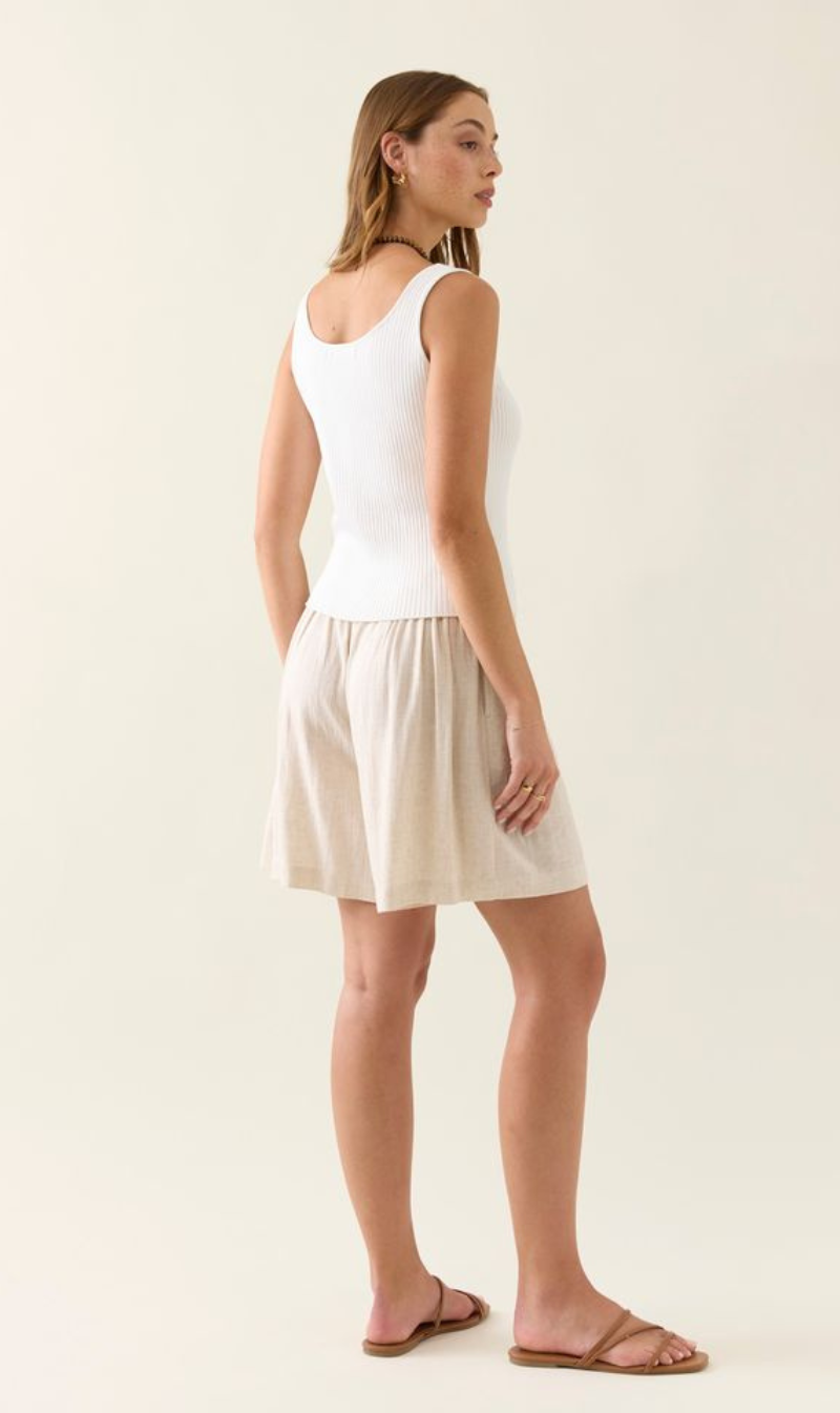 The staple of the season, the Adele Tank is a ribbed knit style with a flattering scoop neckline and a slightly cropped cut. Its generous stretch ensures comfort while keeping shape.