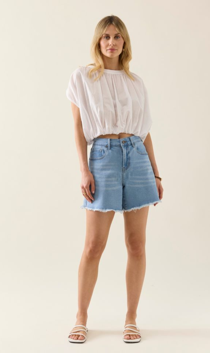 A warm-weather staple made from soft stretch denim. The Duke Denim Shorts feature a mid-rise waist, five-pocket design, raw edge hem and subtle brand detailing.