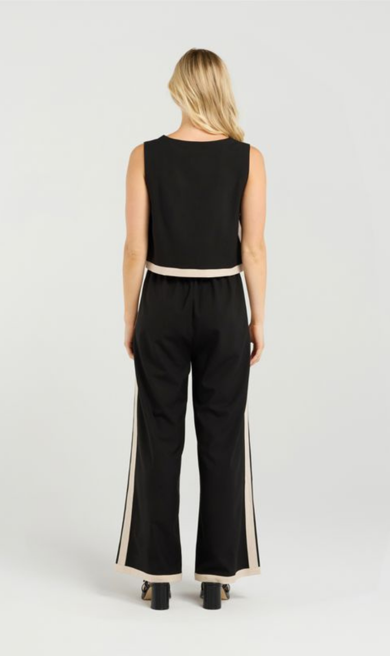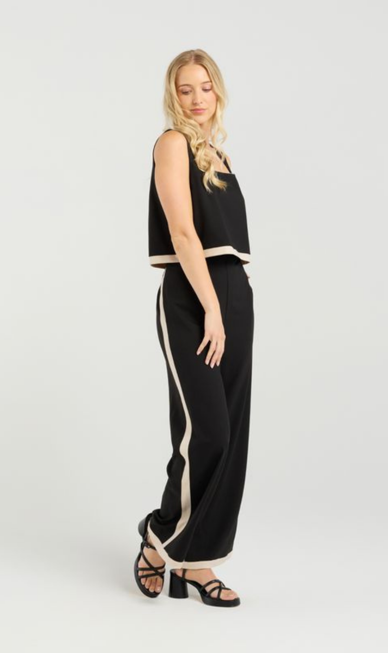 Clean lines meet bold contrast in this sleeveless crop top. Featuring a square neckline and standout side panels, it’s definitely a must have statement piece. Fitted just right and cropped to flatter, it’s perfect for pairing with high-waisted anything— or with the matching Priscilla pant for the ultimate summer outfit.