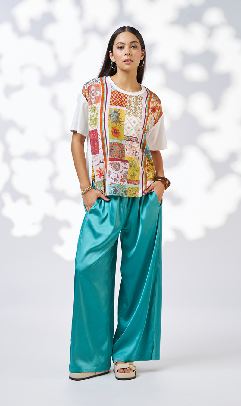 Easy fitting cotton tee with a round neckline and a custom front panel print to elevate the style.