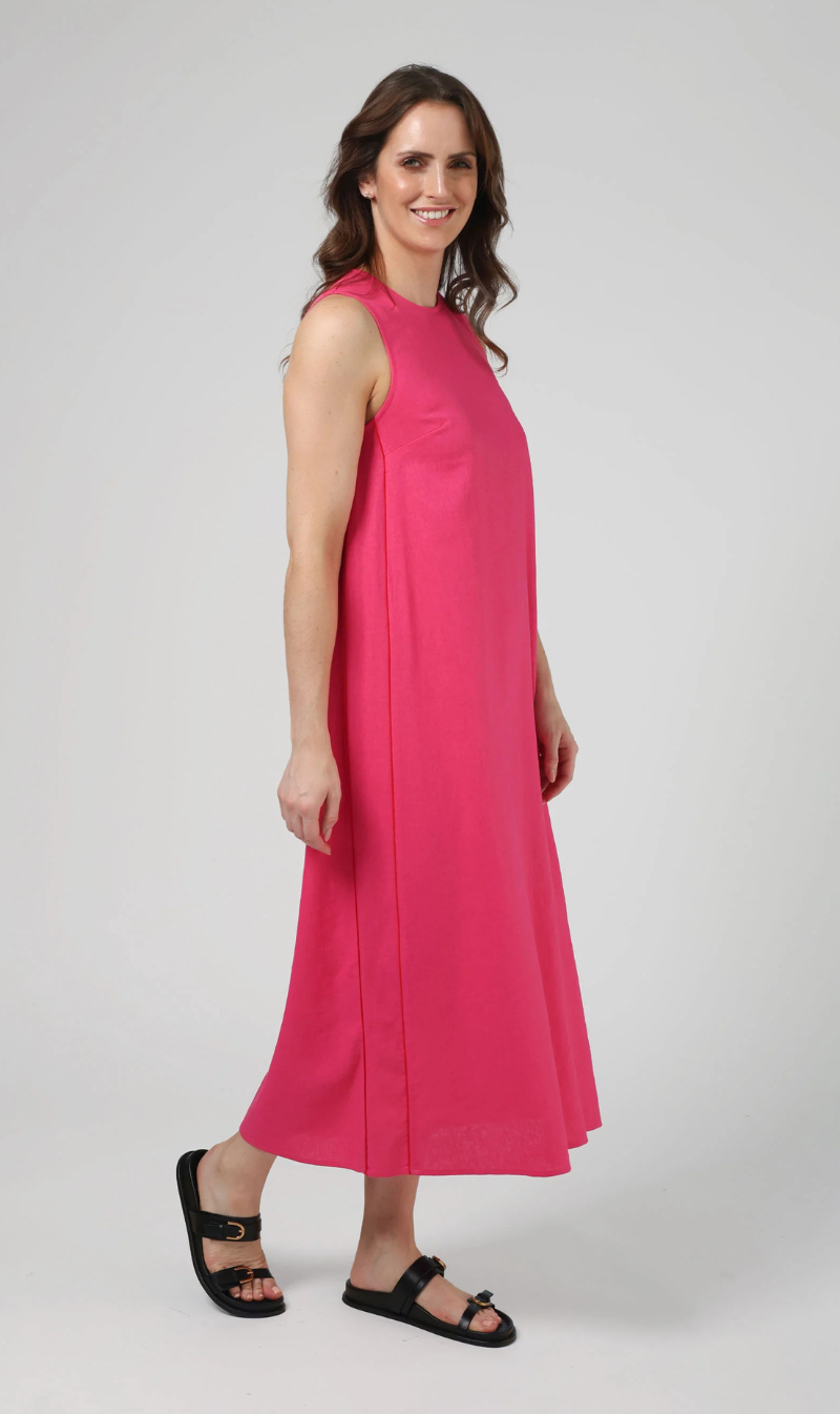 A Line maxi dress with side panel contrast piping detail and back keyhole opening with gold logo button fastening